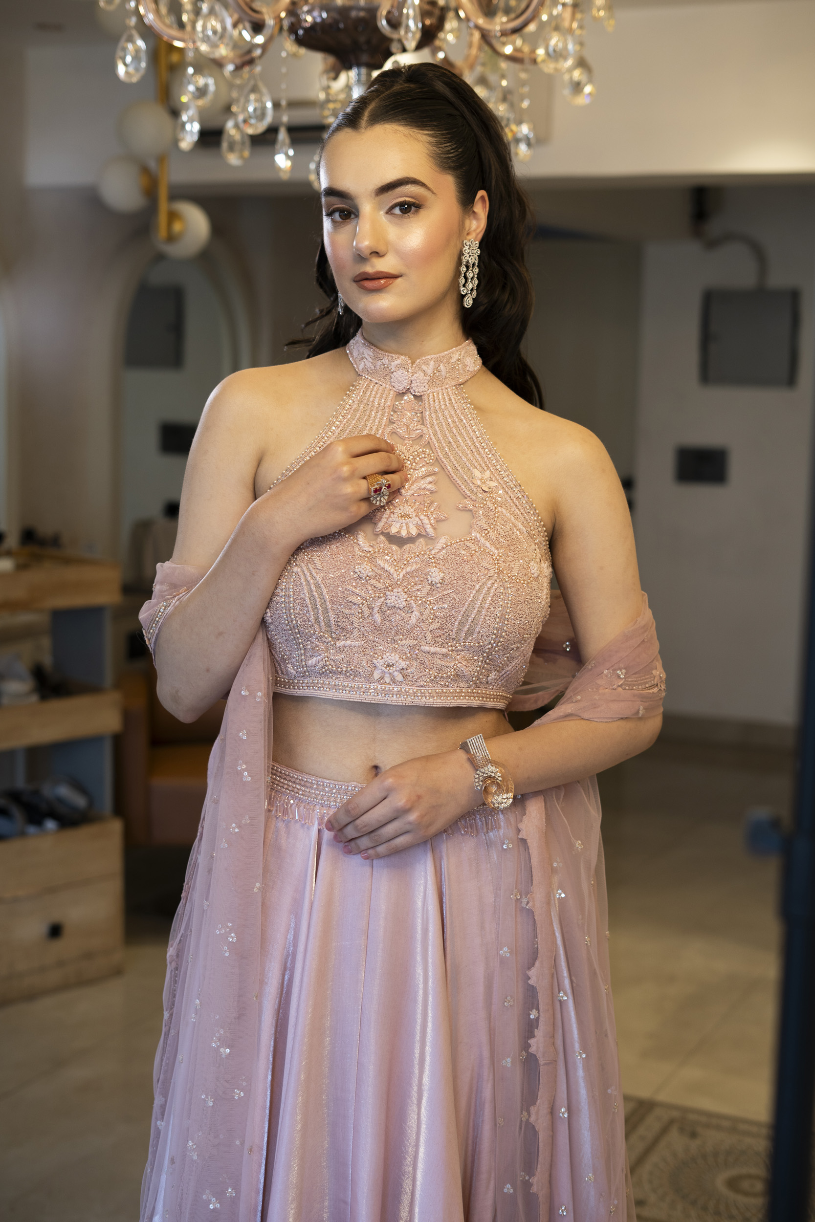 Foundation: NARS, MAC, Charlotte Tilbury, Fenty Beauty Concealers: Tarte, Too Faced, NARS Eyeshadows: Huda Beauty, Natasha Denona, Pat McGrath Glitters: Urban Decay, Inglot Blush: Charlotte Tilbury, MAC, Natasha Denona Lipsticks: Huda, Fenty Beauty, MAC Powder & Fixers: Chanel, Hourglass, Huda Beauty Mascara: Benefit, L’Oréal Liners/Pencils: MAC, Colorbar, Kay Beauty Lashes & Bindi: Yes! I’ve got them covered for you.